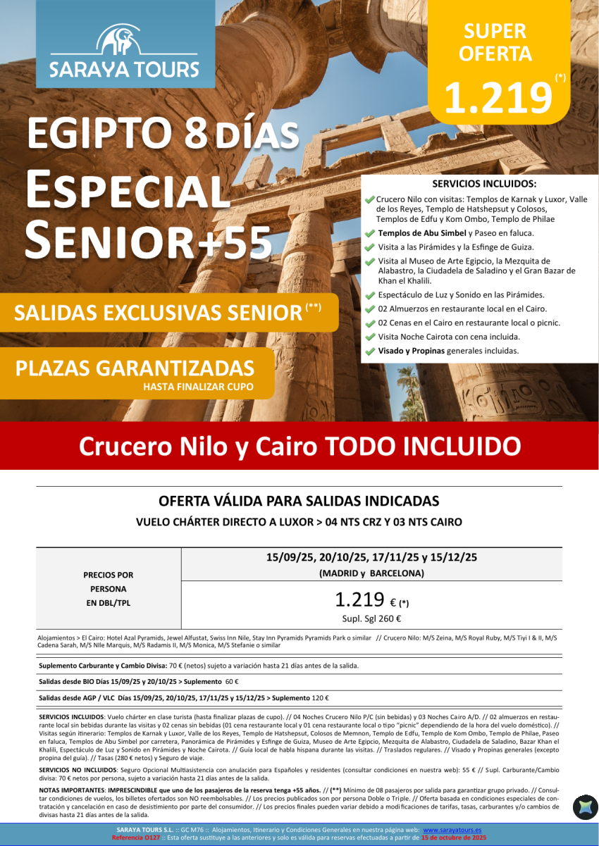 Especial Seniors Egipto hasta Diciembre 2025