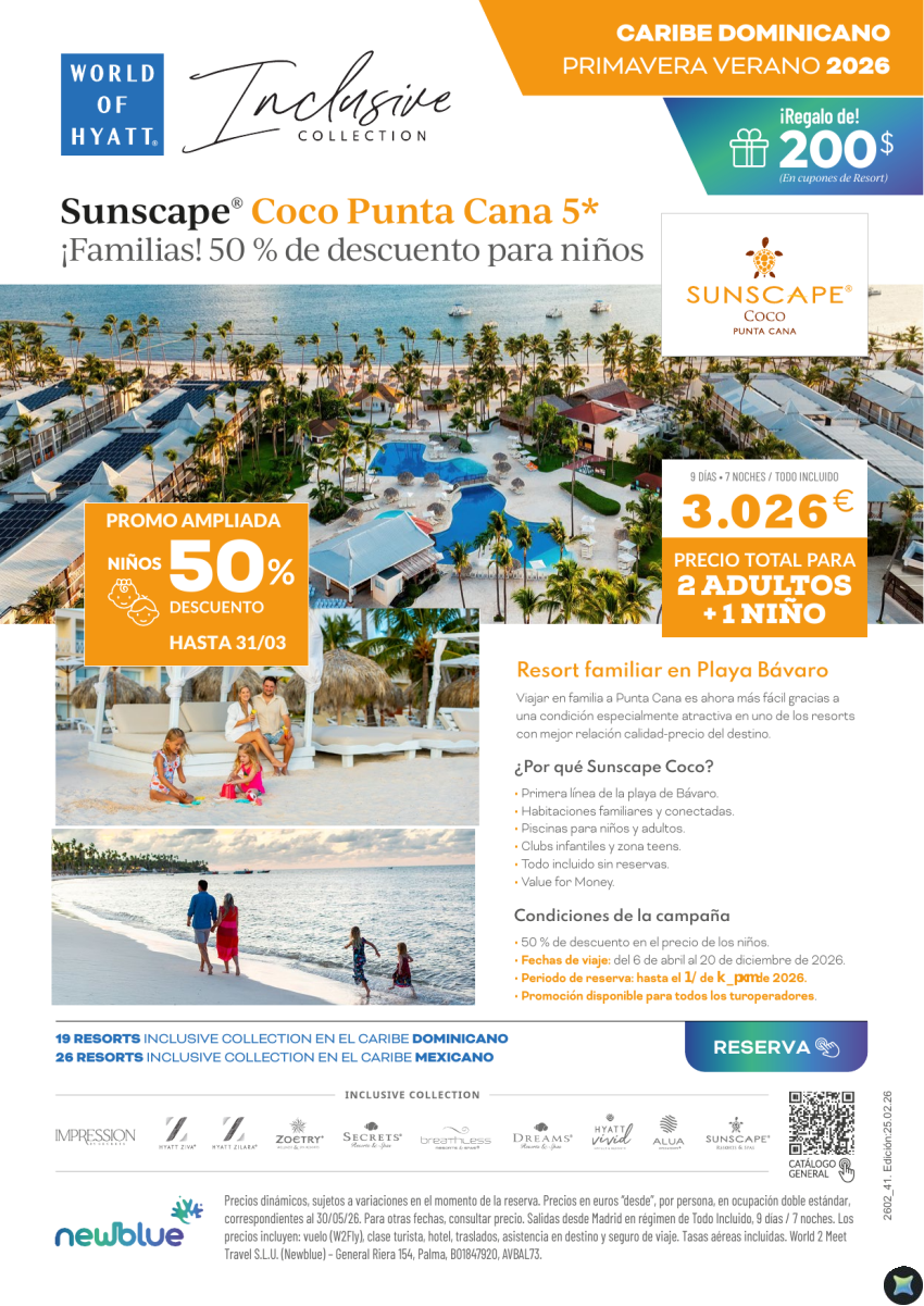 Ampliamos Promo 50% Dto. Niños. Punta Cana. Sunscape Coco. 2 Adult + 1 Niño: 3.026€